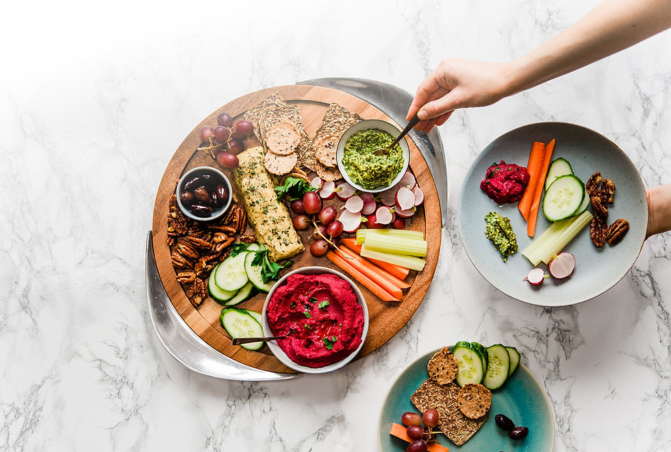 When in doubt loading up your board with an assortment of brightly coloured fresh vegetables, herbs, and fruits is sure to appeal to our tendency toward eating with the eyes. They are not only packed with flavour, but fibre and phytochemicals that are beneficial for disease prevention. It’s a win-win situation.